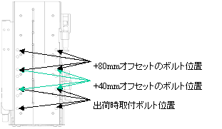 下図の様に出荷時の位置からZ軸+方向に40mm、または80mmに取付け位置を変更できます。