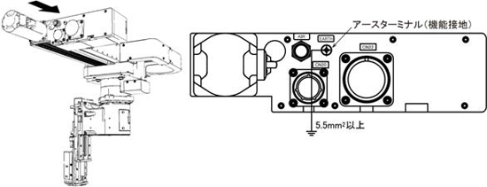ロボット本体のアースターミナルを、5.5mm2以上の配線で接地してください。