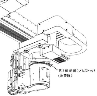 第2軸(R軸)のメカエンドの変更は出荷時に取付いている第2軸(R軸)メカエンドの六角穴付ボルト位置を変更した後、ティーチングペンダントまたはWINCAPSIIIでR軸動作範囲を変更することにより行います。