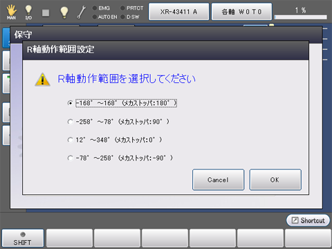 ティーチングペンダントでのR軸動作範囲の変更