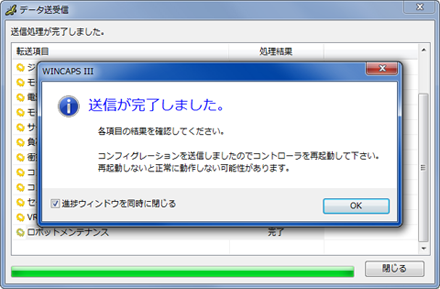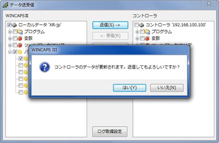 プロジェクトのアームデータをWINCAPSIIIからロボットコントローラに送信します。
