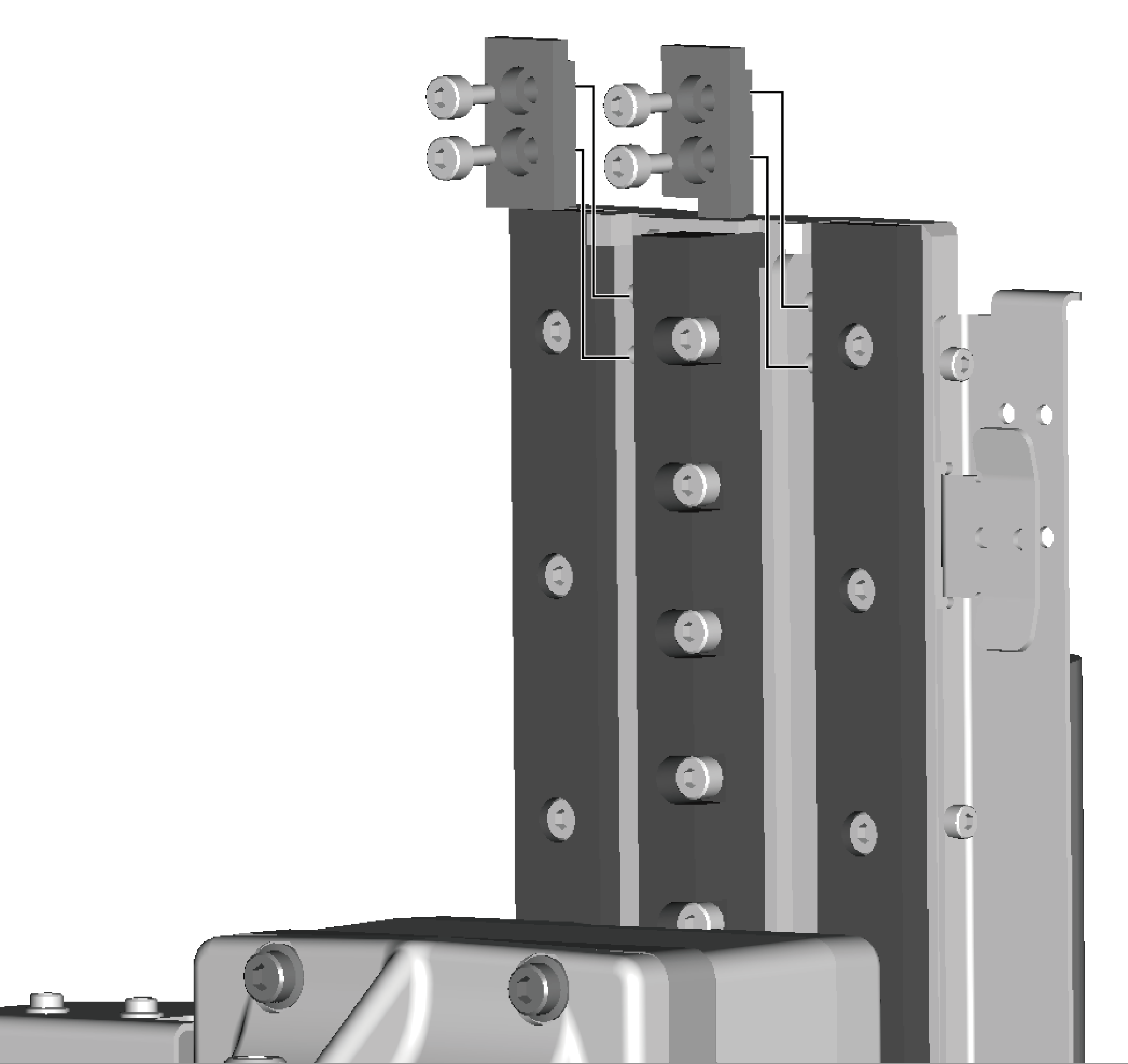 メカストッパを取付けることのできる位置にZ軸を動かした後、モータ電源とコントローラ電源を切り、メカストッパを取付けてください。Z軸のブレーキを解除した状態で取付け作業はしないでください。