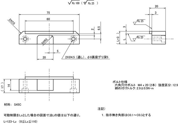 第3軸(Z軸)負方向のメカストッパの製作図面(XRシリーズ、z:135mmの場合)