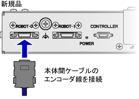 新規品を使用する場合、本体間ケーブルのエンコーダ線は、エンコーダハブの"ROBOT-0"と印字されている方 (正面から見て左側) のコネクタに接続してください。