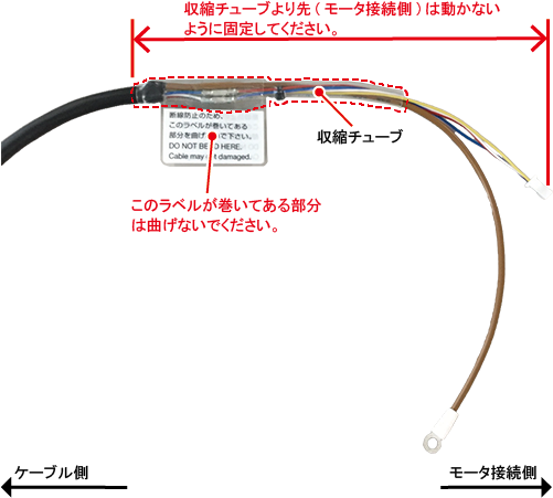 断線を防止するため、エンコーダケーブルおよびモータ中継ケーブルは、下記項目に注意してください。