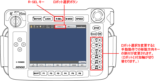 [R-SELキー]または、[ロボット選択]ボタンを押します。