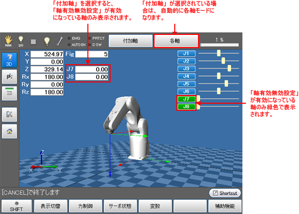 - この画面は表示させなくても、付加軸は手動で動作します。