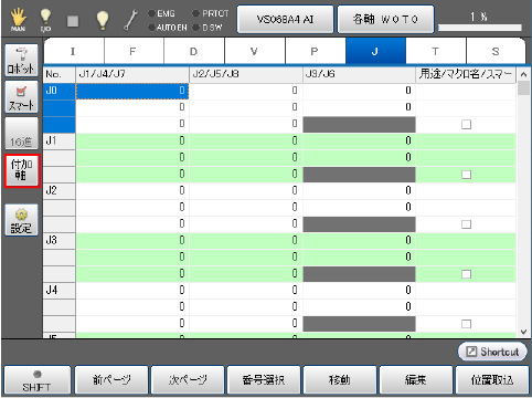 J型変数を用いて、付加軸とロボット軸の位置を取得する方法