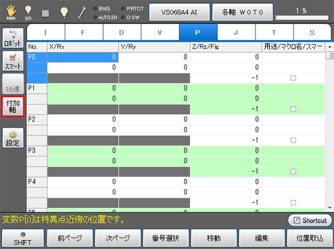 J型変数と、P型変数を用いて、付加軸とロボット軸の位置を合わせて取得する方法