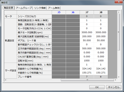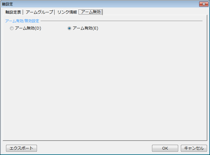 付加軸調整時に付加軸のみモータオンして動作確認する場合、アーム無効に設定します。