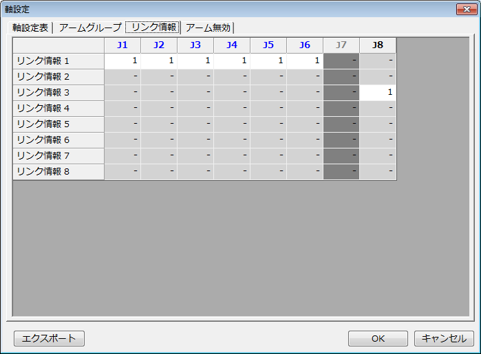 設定内容は、付加軸取扱説明書の「リンク情報設定」を参照してください。