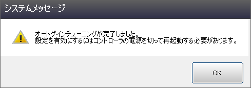オートゲインチューニングが完了すると以下のメッセージが表示されます。コントローラを再起動します。