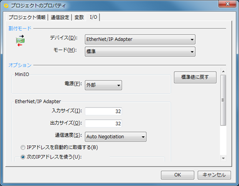 | デバイス(D) | "EtherNet/IP Adapter"または"[Parallel] + [EtherNet/IP Adapter]" |