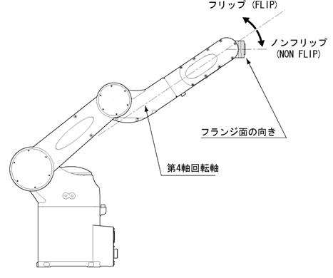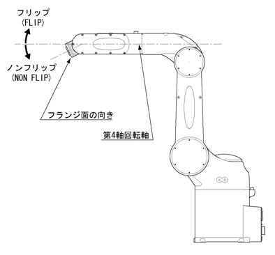 第4軸の回転軸中心線を基準にして、フランジ面の向きが上側にある場合がフリップ(FLIP)で、下側にある場合がノンフリップ(NONFLIP)です。