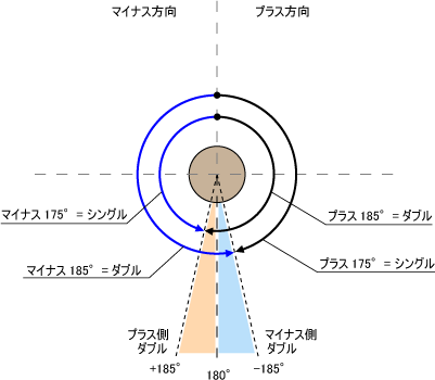 第4軸の回転角θ4が(-180°<θ4≤180°)の場合がシングル4で、(180°<θ4≤185°または-185°<θ4≤-180°)の場合がダブル4です。