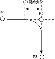 目標位置オプションには「パス開始変位」と「目標位置の付加軸オプション」があります。