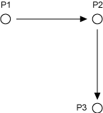 'P1を通りP2へ移動する円弧補間動作をします。P2にてパス動作し、次の制御に移ります