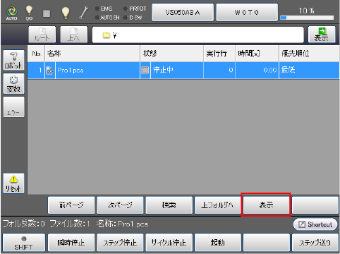[プログラム一覧ウインドウ]でPro1を選択し、[表示]を押します。