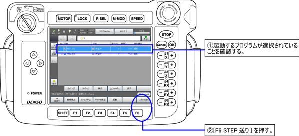 プログラム表示をしながらステップ起動したい場合は、ステップ動作前に[F11 表示]を押してください。