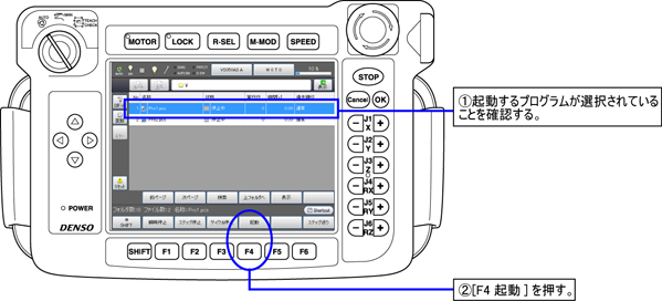 [プログラム一覧]ウインドウで、自動運転させるプログラムを選択します。