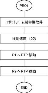 現在位置からP1へ移動し、その後P2へ移動させるプログラムを作成します。