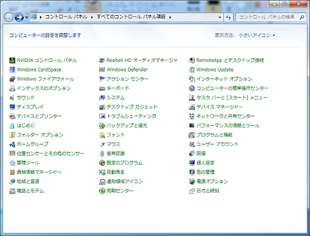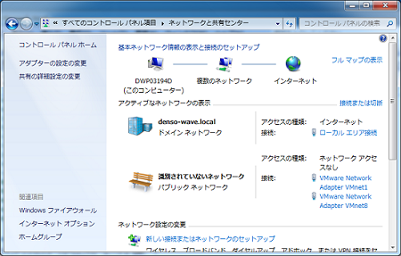[コントロールパネル]ウィンドウの[ネットワークと共有センター]をクリックします。[ローカルエリア接続]のアイコンが表示されます。このアイコンが「無効」と表示している場合には、アイコンにマウスを合わせ 右クリックにて[有効にする(A)]を選択してください。