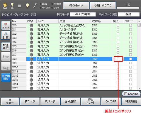 擬似I/O入力をONからOFFに切替えるには、上記と同じ手順で実施します。