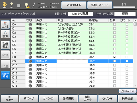 | [スマート] | [スマート]のチェックボックス欄にチェックを入れたI/O番号のみを表示します。 |