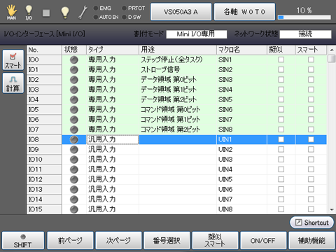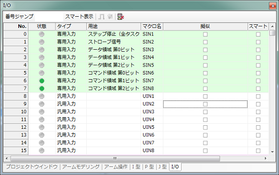 現在設定されている割付モードはティーチングペンダント 又は WINCAPSIIIの I/O画面 にて確認できます。I/O割付モードにより、外部機器(PLC等)からの起動方法が変わりますので設定状態は事前に確認しておく必要があります。
