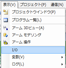 [表示(V)] - [I/O] を選択し、[I/O]ウィンドウを表示させます。