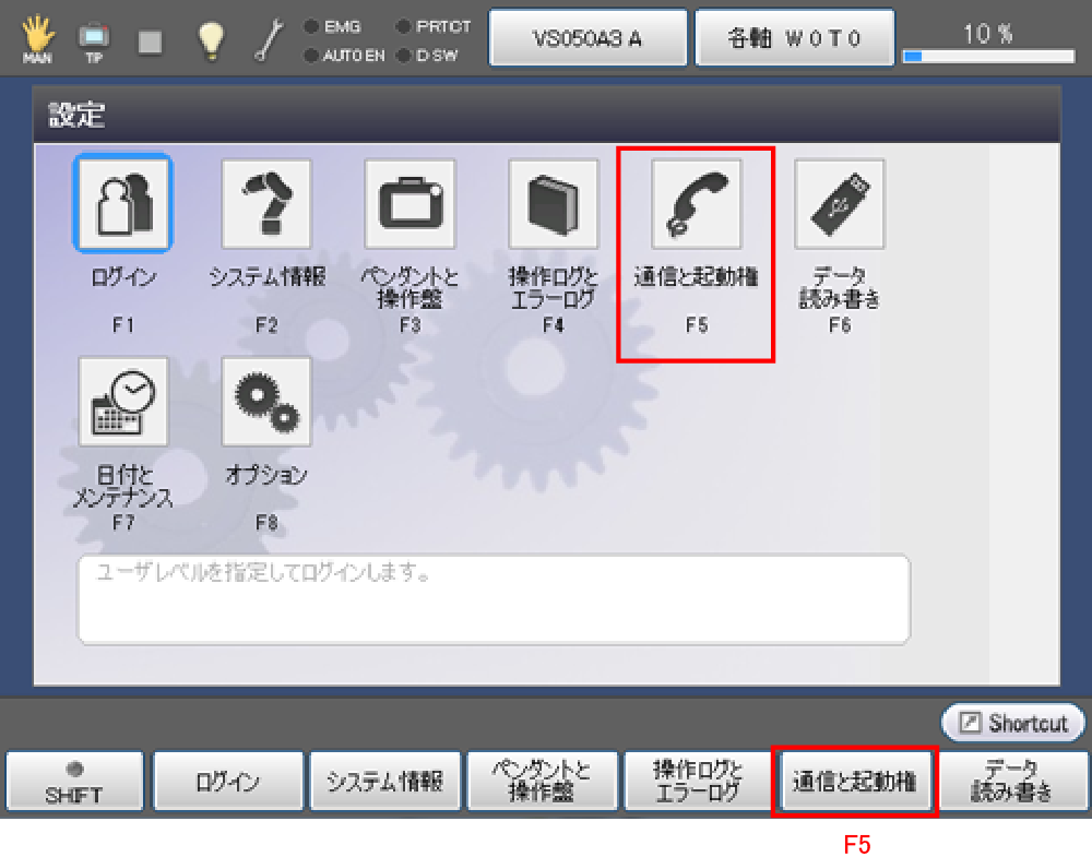 ティーチングペンダントの基本画面で[F6 設定]を押します。