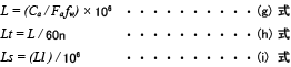 疲れ寿命は、一般に総回転数で表すが、総回転時間、あるいは総走行距離で表すこともある。疲れ寿命は次式により求められる。