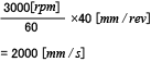 リード換算値:40mm/rev モータ最高回転数3000rpmとすると、