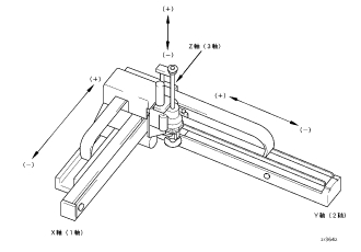 CP動作(直線、円弧動作)が正しく動作するためには、軸構成と動作方向が上記の直角座標(右手系座標)構成と一致している必要があります。