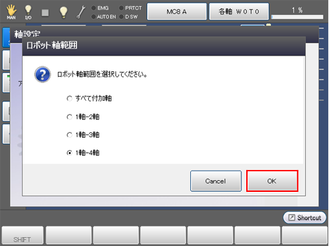 ロボット軸に指定する軸を選択し、[OK]を押します。