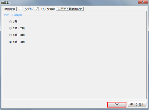 「ロボット軸範囲」画面が表示されます。