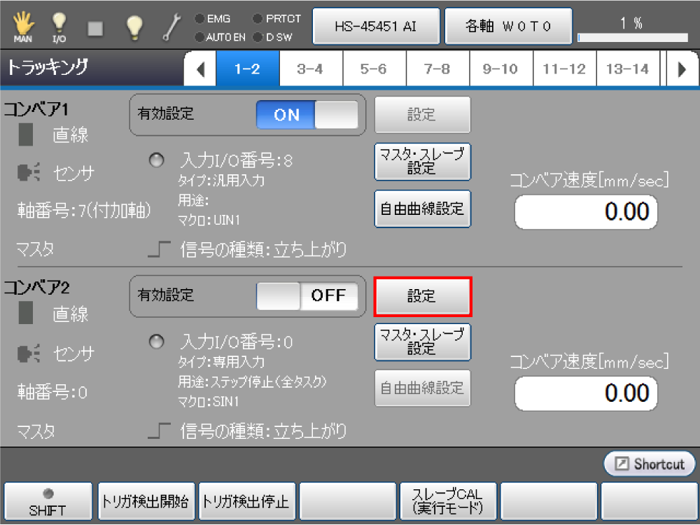 その後の設定手順については、コンベア1台、ロボット1台の組合せと同じです。
