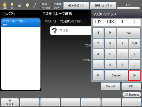 テンキーを使ってスレーブコントローラのIPアドレスを入力し、[OK]を押します。