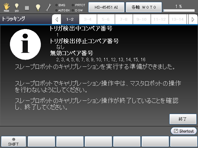 - コンベアトラッキング/付加軸トラッキングのキャリブレーション作業は、マスタ、スレーブの順で行います。