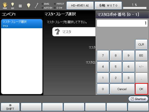 [マスタロボット番号]画面が表示されるので、数字を入れて、[OK]を押します。
