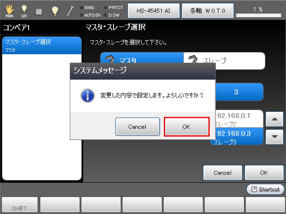 テンキーを使ってスレーブ数を入力し、[OK]を押します。