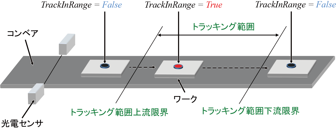 TrackInRange (コンベア番号[, オフセット量[, 下流限界チェック]])