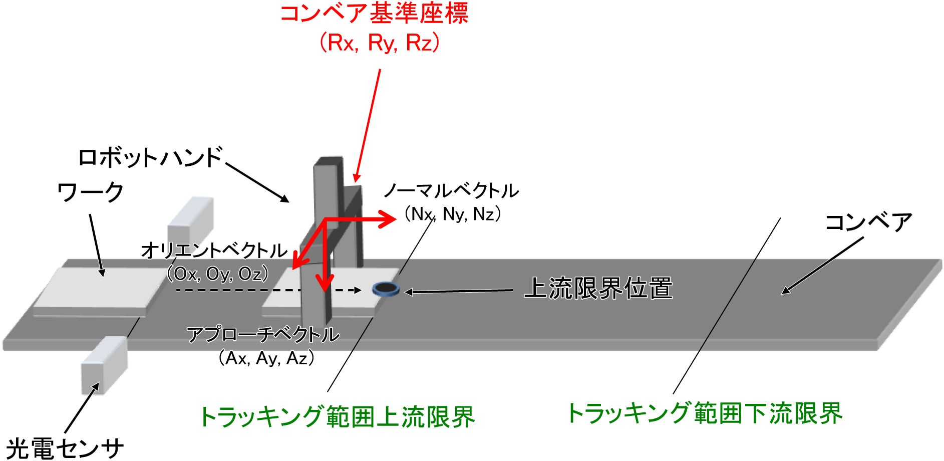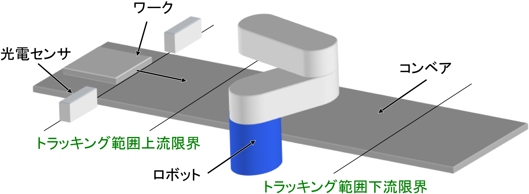 | トラッキング範囲上流限界 | ロボットがコンベア追従動作を開始することのできる上流側の位置[mm] |