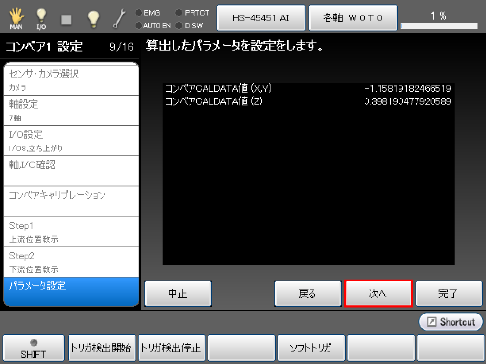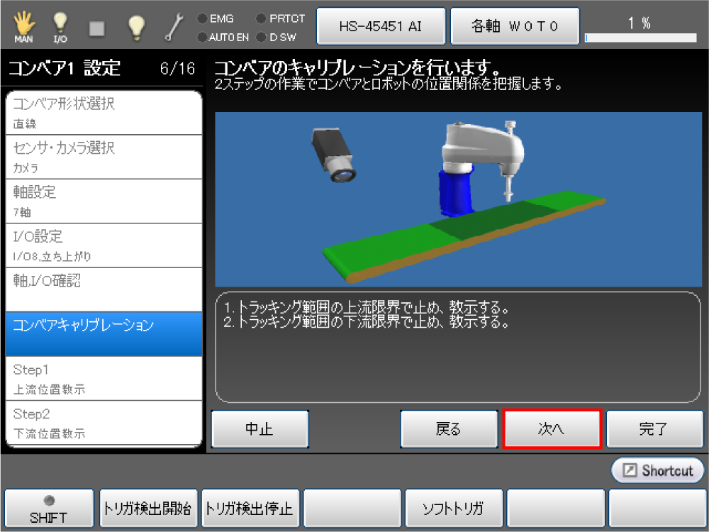 コンベアキャリブレーションは以下の順で実施します。