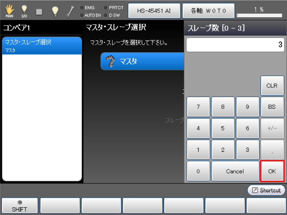 テンキーを使ってスレーブ数を入力し、[OK]を押します。