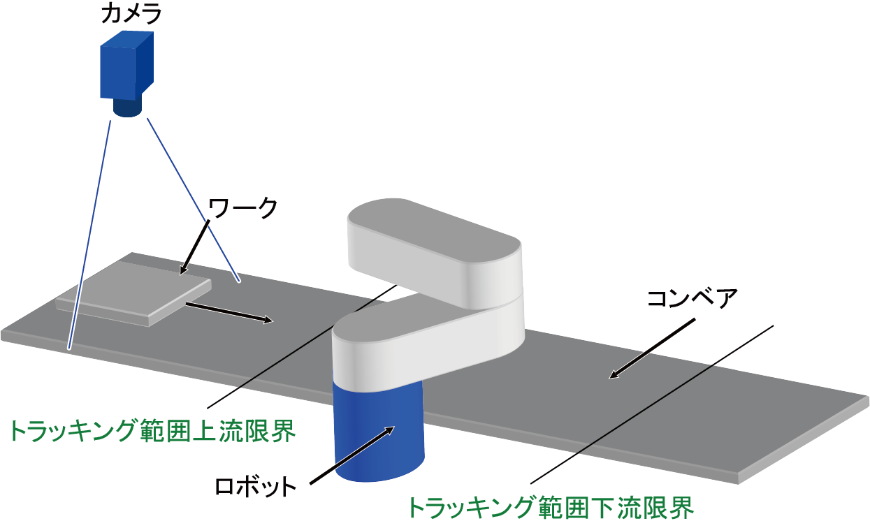 コンベアトラッキング中に、Moveコマンドなどの通常動作コマンドを実行すると、トラッキング動作を中断してしまうので注意してください。