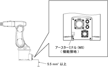 ロボット本体のアースターミナルを、5.5mm2以上の配線で接地してください。
