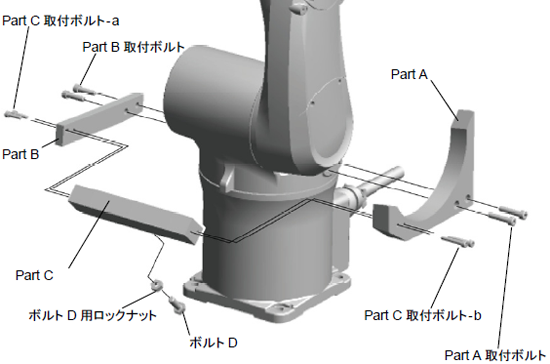 2軸メカエンドを変更するには、以下の部品をロボット本体に取付けます。