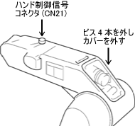 セカンドアームのカバーを外し、機内配線が観察できるようにします。 下図に各機種の取外すカバーを示します。