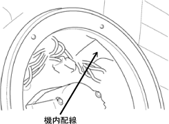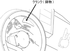 VS-6577の場合の確認方法 この機内配線が見えているのが正常。(機内配線がクランクに巻かれると、見えなくなる)